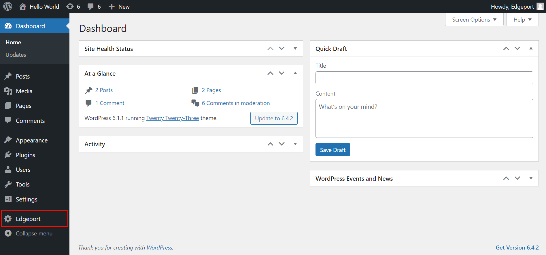 You will notice a new Edgeport option appearing in the left-hand menu, giving you access to the plugin settings.