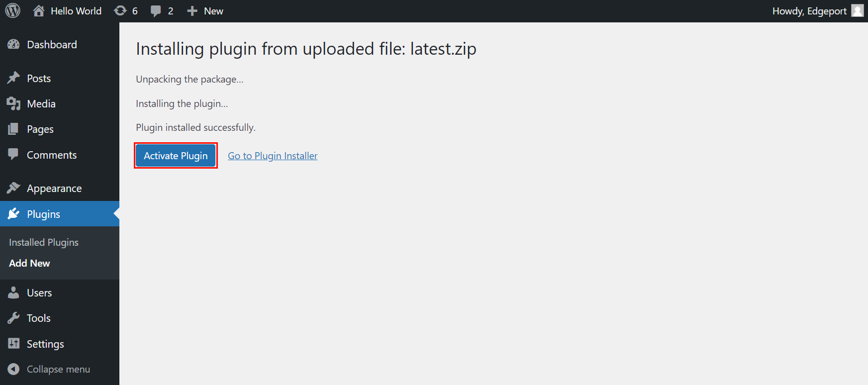 β£οΈInstall Edgeport WP Plugin