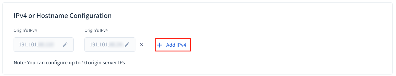 This section provides you with the possibility to add public IPv4 addresses for your origin servers.