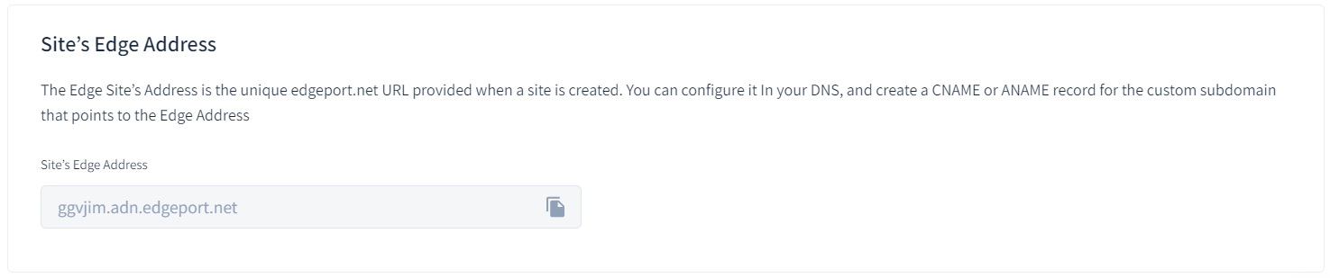 You can use this URL in your DNS configuration, or when creating CNAME or ANAME records for your custom sub-domain(s) that should point to the Edge address.
