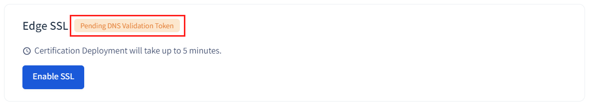The frame will be closed, and you’ll see the *Pending DNS Validation Token* status displayed next to the ***EdgeSSL*** option, indicating that the process of generating a new token has started.