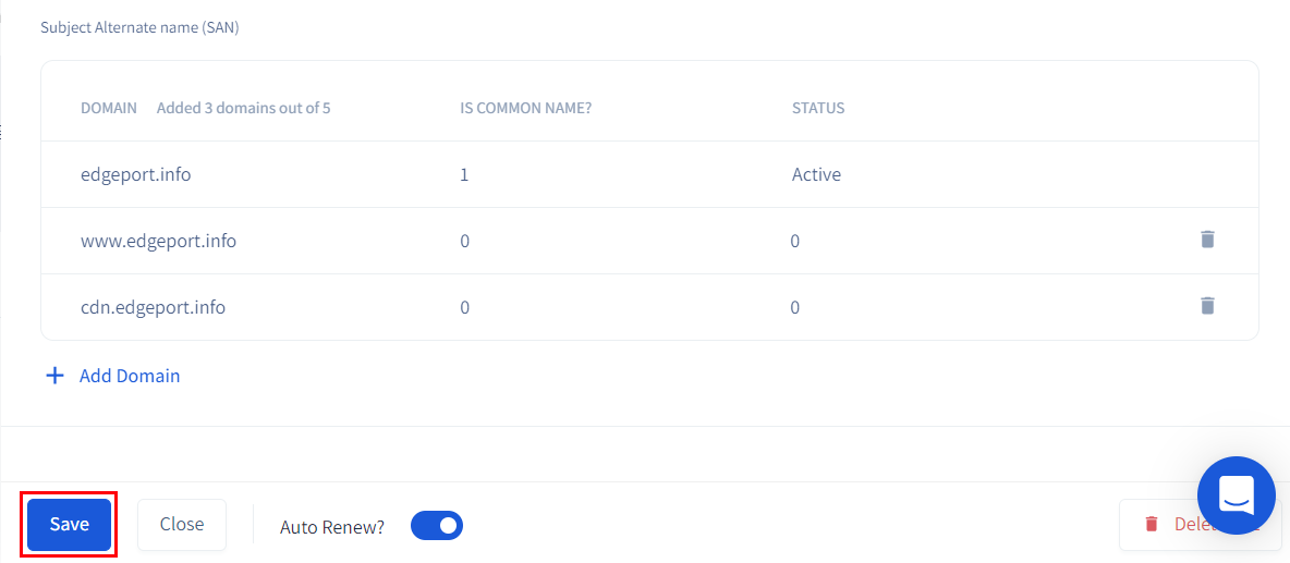 Repeat this step to add all the necessary custom ADN and CDN domains according to the [CNAMEs](https://docs.edgeport.com/product-docs/start-guide/issue-ssl-certificate/broken-reference) you’ve set up for your project.